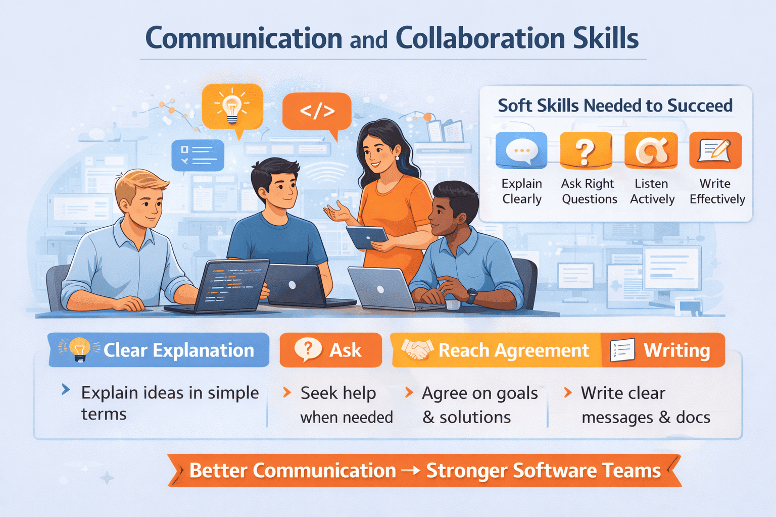 Modern software development is collaborative. You will work with designers, testers, clients, and AI tools.
