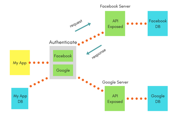 Consider the figure below, suppose I have made a new cool application but I do not want to maintain the data of the users, who login to my application, but we want only authenticated users to use the application.